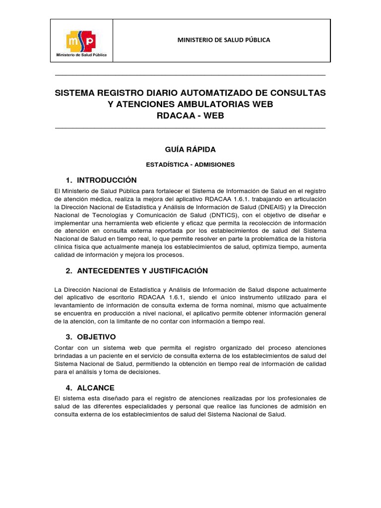Guia Rapida Estadistica Rdacaa Web V1 Archivo De Computadora Red Mundial - • el aplicativo rdacaa solo considera informacion de atenciones no personas y que hayan recibido la prestacion de salud en establecimientos del msp y fiscomisionales.